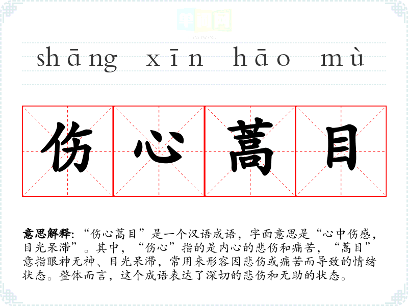 在华人社会中,悲伤的情感常常被视为人类共通的体验,“伤心蒿目”反映了对失去的哀痛与对美好时光的怀念。这一成语在现代社会仍适用,尤其在面对生活中的挫折、丧失或困境时,常被人们引用,以表达情感共鸣。