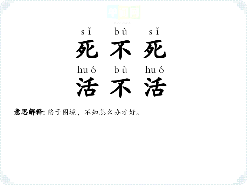 | 死不死,活不活 | 陷于困境,不知怎么办才好。 |