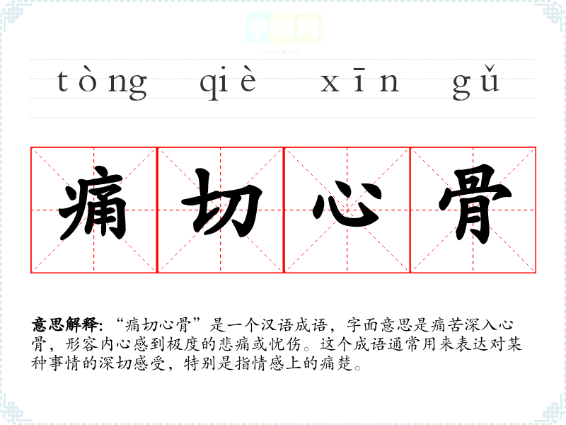 “痛切心骨”这个成语的具体历史来源并不明确,但可以推测它源于古代文人对情感深度的描绘。在**古代文学中,许多作品都强调情感的深切与痛苦,例如诗词中常常表现对故人、故乡或爱情的思念与忧伤。因此,该成语可能是在这种文化背景下逐渐形成并被使用。