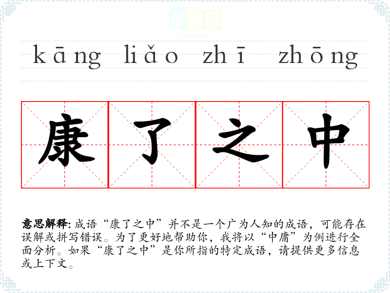 成语“康了之中”并不是一个广为人知的成语,可能存在误解或拼写错误。为了更好地帮助你,我将以“中庸”为例进行全面分析。如果“康了之中”是你所指的特定成语,请提供更多信息或上下文。