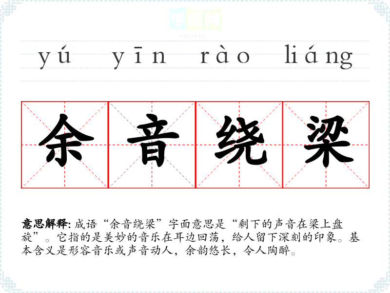 余妙绕梁 形容歌声美妙动听,长远留在人们耳边。