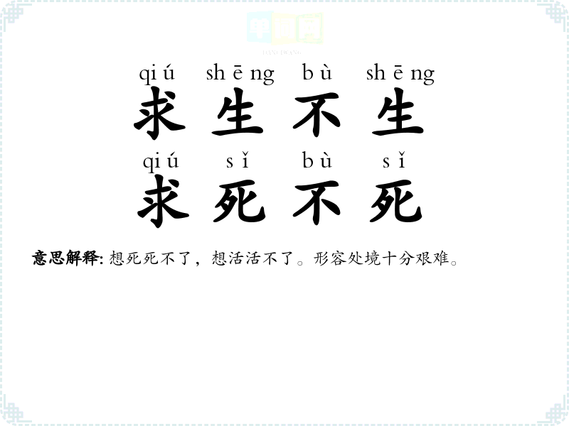 | 不生不死 | 指超脱生死的界限。现指半死不活。 |