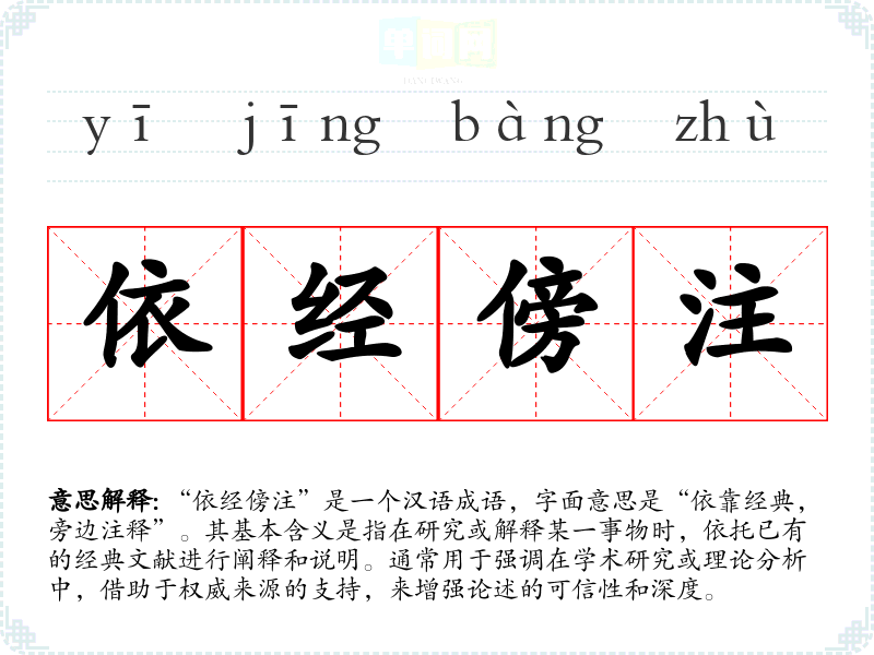 | 依经傍注 | 依照经典及其注释。指说话有根有据。 |