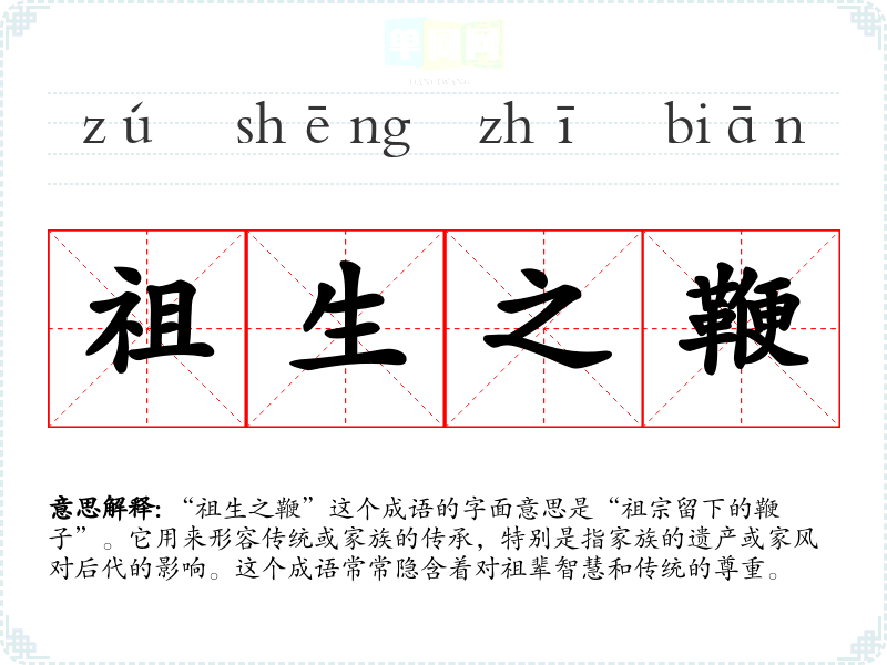 - 日常对话:在家庭聚会中,长辈可能提到“祖生之鞭”以教育年轻一代要珍惜家族的传统。