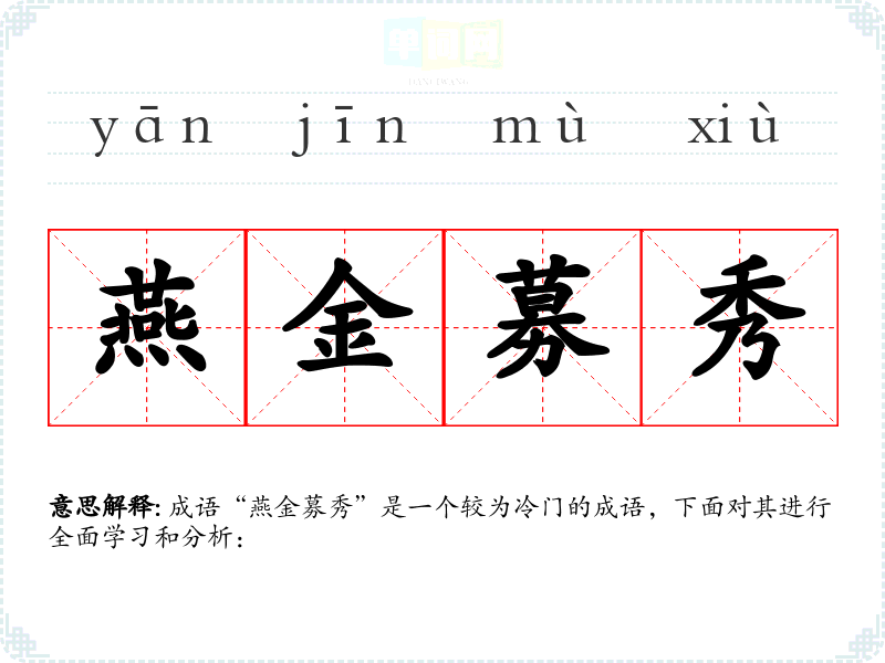 成语“燕金募秀”是一个较为冷门的成语,下面对其进行全面学*和分析: