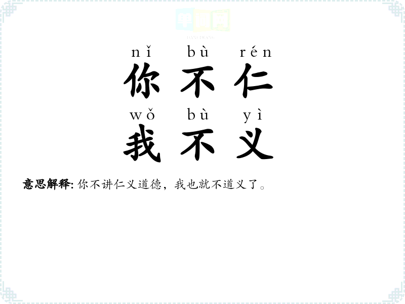 | 你不仁,我不义 | 你不讲仁义道德,我也就不道义了。 |