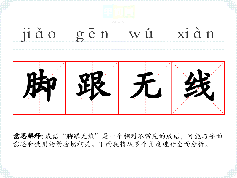 成语“脚跟无线”是一个相对不常见的成语,可能与字面意思和使用场景密切相关。下面我将从多个角度进行全面分析。