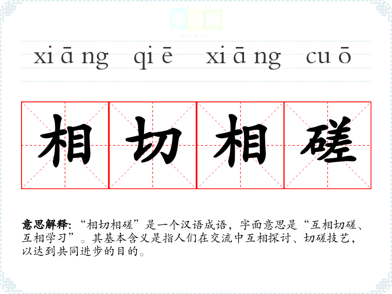 通过对“相切相磋”的学,我更加深刻地理解了交流与合作的重要性。在我的语言学和表达中,这个成语提醒我要主动寻求与他人的交流与互动,以便在思想和技能上不断进步。