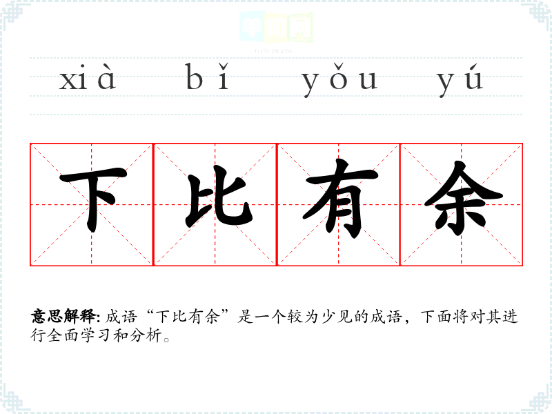 成语“下比有余”是一个较为少见的成语,下面将对其进行全面学*和分析。