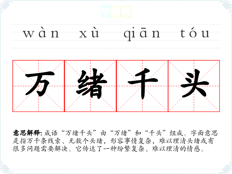 - 日常对话:当朋友面临多重任务时,可以说“现在你真是万绪千头,别急,我们慢慢来。”