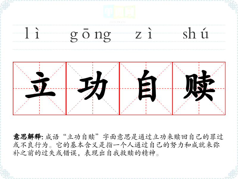 | 立功自赎 | 建立功绩弥补自己的过失。 |