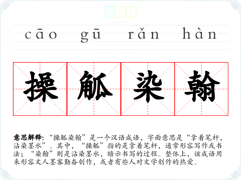 | 染翰操觚 | 翰:毛笔;操觚:拿木简写文章。指提笔作文。 |