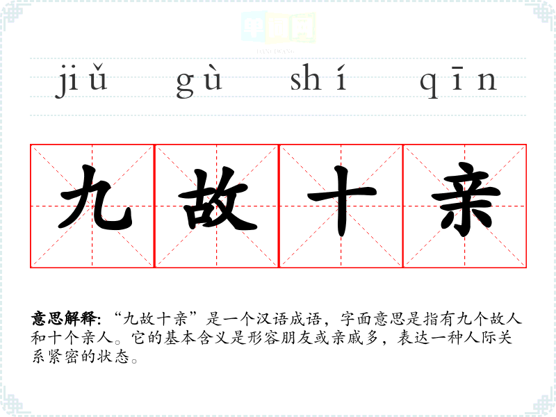 | 九故十亲 | 泛指亲戚朋友。 |