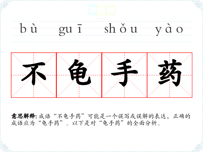 成语“不龟手药”可能是一个误写或误解的表达,正确的成语应为“龟手药”。以下是对“龟手药”的全面分析。