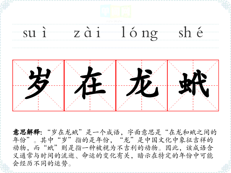 | 岁在龙蛇 | 岁,岁星;龙,指辰;蛇,指巳。后指命数当终。 |