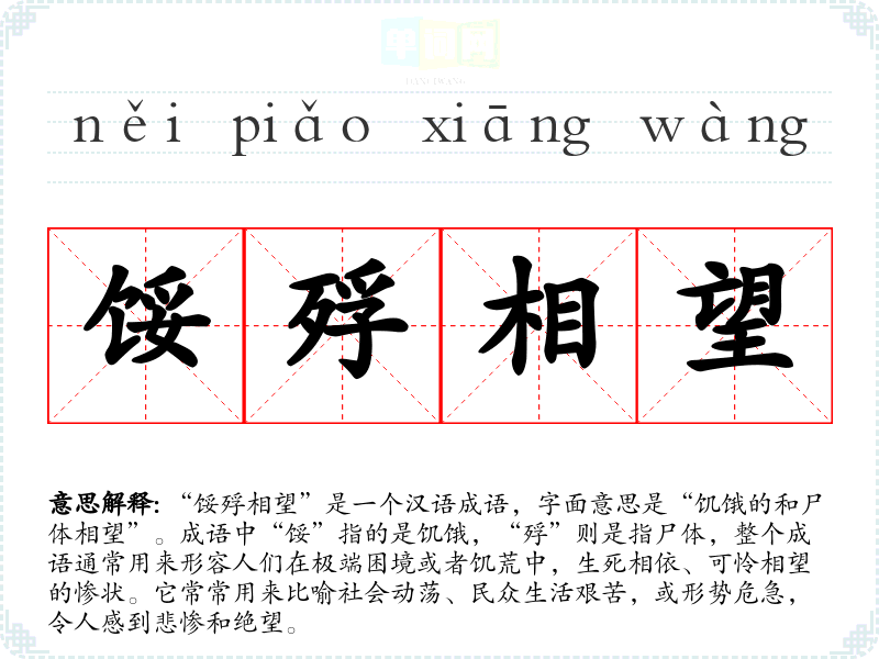 通过对“馁殍相望”的学,我对这一成语的理解加深了,认识到它不仅是对历史悲惨的记载,也是对现代社会的一种警示。在语言学和表达中,掌握这样的成语可以让我更好地传达情感和态度,增强语言的表现力。