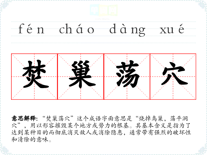巢倾卵破 比喻灭门之祸,无一得免。亦以喻整体被毁,其中的个别也不可能幸存。