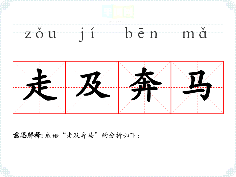 “走及奔马”字面意思是走路和奔跑的马,指行动迅速、迅捷如风的状态。它通常用来形容一个人或事物的速度快,常常强调一种急切、迅猛的态度。