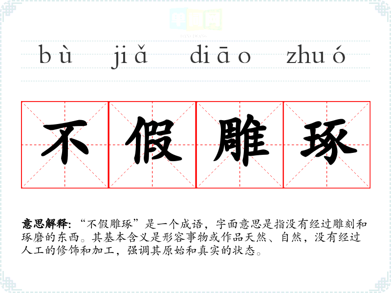 “不假雕琢”是一个成语,字面意思是指没有经过雕刻和琢磨的东西。其基本含义是形容事物或作品天然、自然,没有经过人工的修饰和加工,强调其原始和真实的状态。