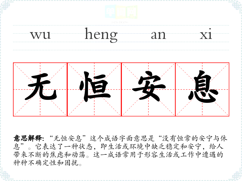 - 日常对话:在谈论生活的压力或工作的不稳定时,可以说“最近工作太忙,真是无恒安息”。