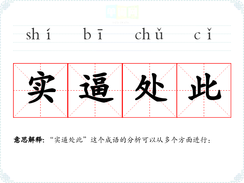 “实逼处此”这个成语的分析可以从多个方面进行: