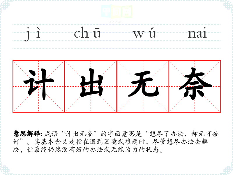 计出无奈 主意出于无可奈何。同“计出无聊”。