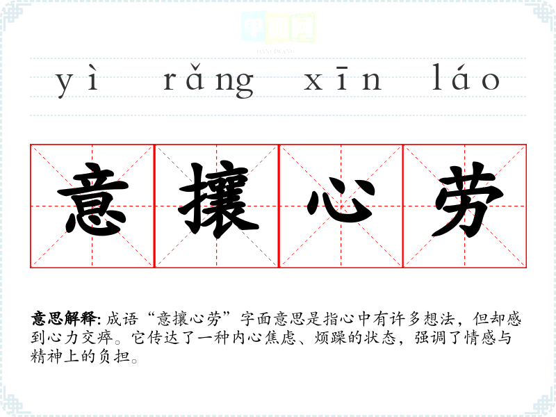 成语“意攘心劳”字面意思是指心中有许多想法,但却感到心力交瘁。它传达了一种内心焦虑、烦躁的状态,强调了情感与精神上的负担。