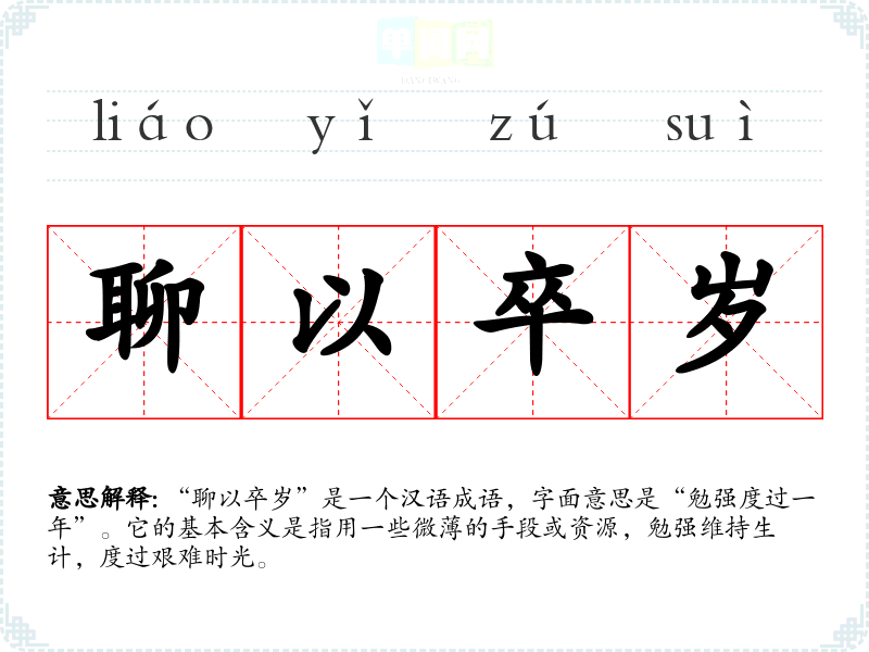 该成语最早出现在《史记·货殖列传》中,文中提到“聊以卒岁”,意指在困境中只能依靠少量的资源勉强度日。这个成语反映了古代人们在艰苦环境中生存的智慧与无奈。