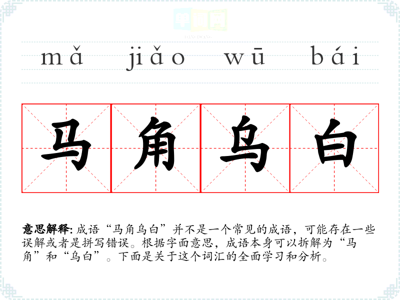 成语“马角乌白”并不是一个常见的成语,可能存在一些误解或者是拼写错误。根据字面意思,成语本身可以拆解为“马角”和“乌白”。下面是关于这个词汇的全面学习和分析。