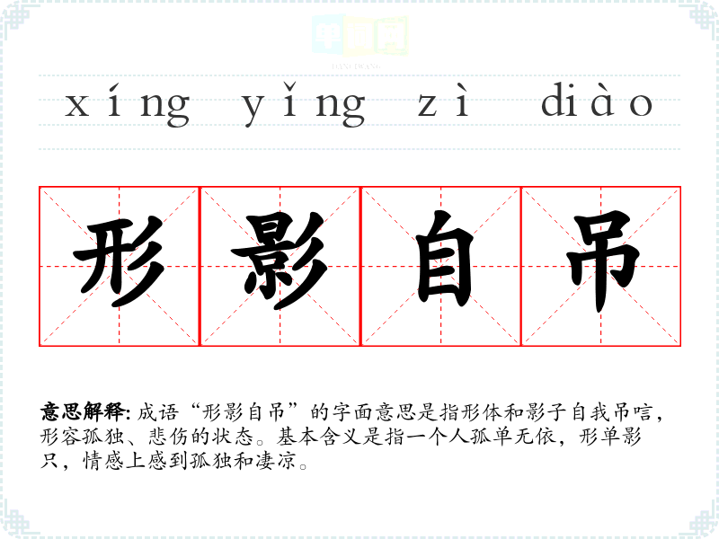 成语“形影自吊”的字面意思是指形体和影子自我吊唁,形容孤独、悲伤的状态。基本含义是指一个人孤单无依,形单影只,情感上感到孤独和凄凉。