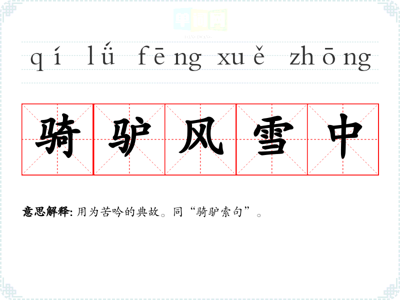 | 冰柱雪车 | 原为唐朝刘义的两首诗名。后用以赞美别人的诗文优美。 |