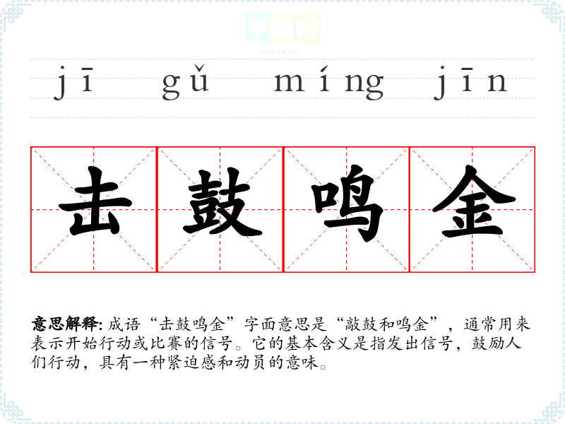 - 日常对话:可以用在鼓励他人行动的场合,比如:“现在是时候了,我们就像击鼓鸣金一样,开始我们的项目吧!”