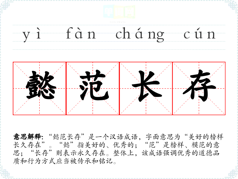 - “楷模长存”:强调能够成为模范的存在。