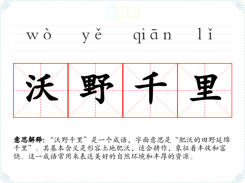 通过对“沃野千里”的学,我深刻认识到这一成语不仅仅是对自然环境的描绘,更蕴含着人们对美好生活的向往与追求。在语言学和表达中,运用这样的成语能够增添情感色彩,使语言更为生动和形象。
