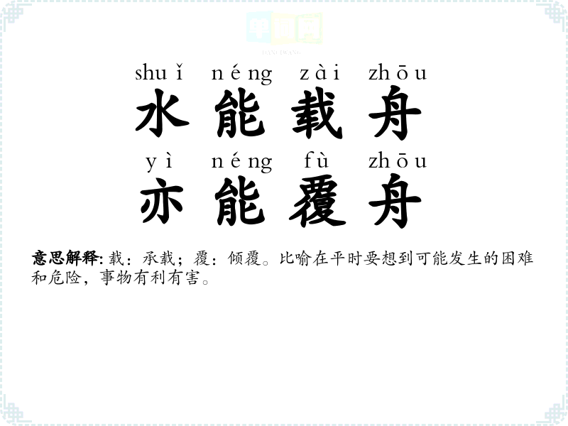 | 借水行舟 | 指趁势行事。同“借水推船”。 |