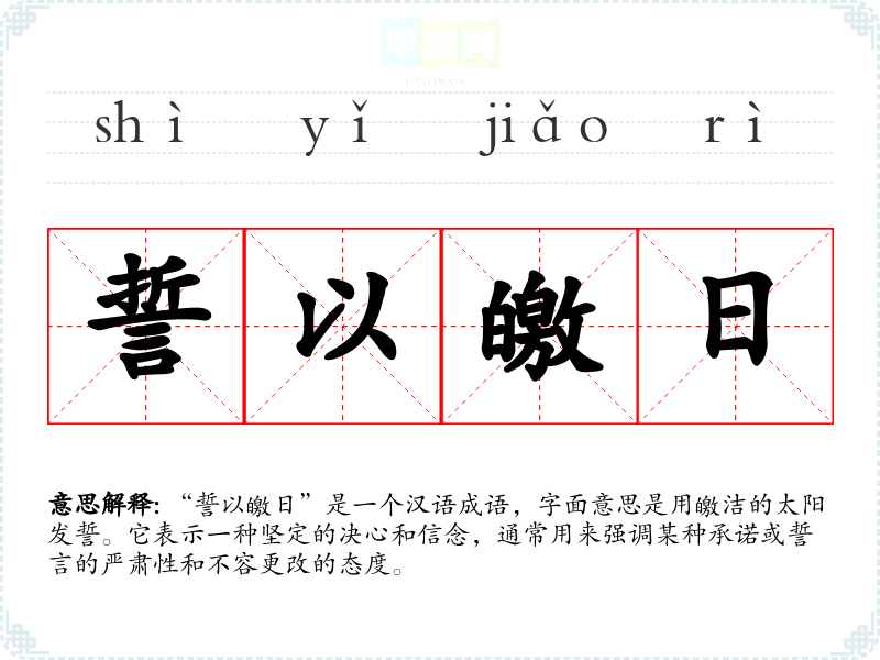 - 他对父母誓以皦日,要努力学*,争取好成绩。