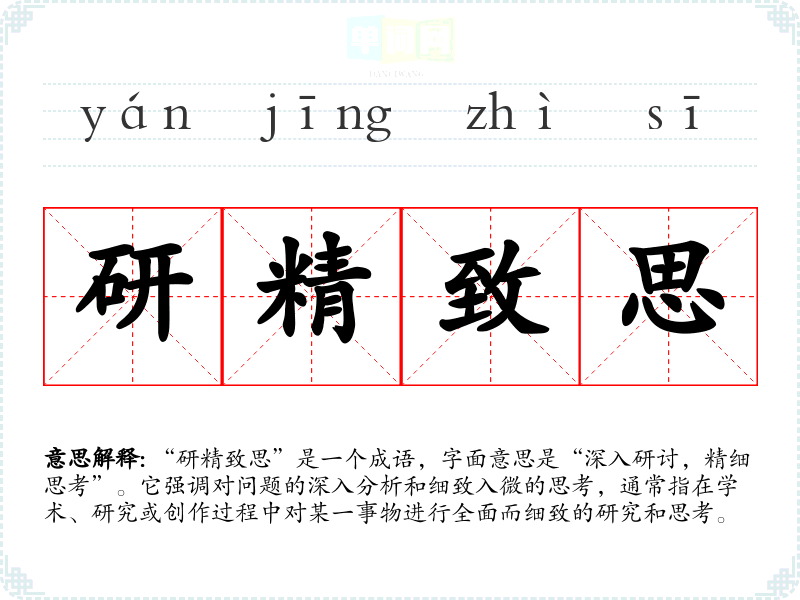- 日常对话:有人在讨论时,提到对某个问题要“研精致思”,表示要深入分析。