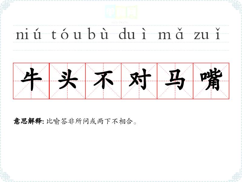 | 牛头不对马嘴 | 比喻答非所问或两下不相合。 |