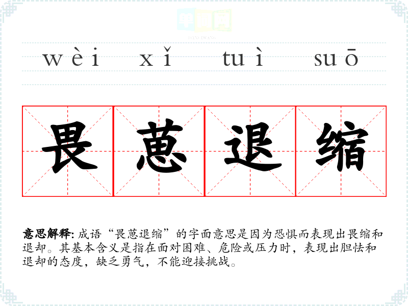 | 畏葸退缩 | 葸:害怕。因为胆怯而后退。 |