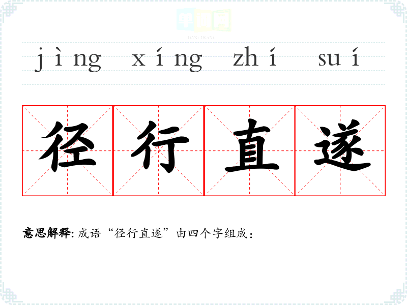成语“径行直遂”由四个字组成: