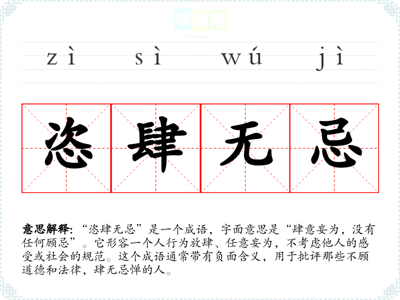 - 日常对话:朋友间可以用这个词形容某人行为不当,比如“他最近真是恣肆无忌,完全不顾及别人的感受”。