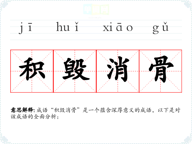 成语“积毁消骨”是一个蕴含深厚意义的成语,以下是对该成语的全面分析: