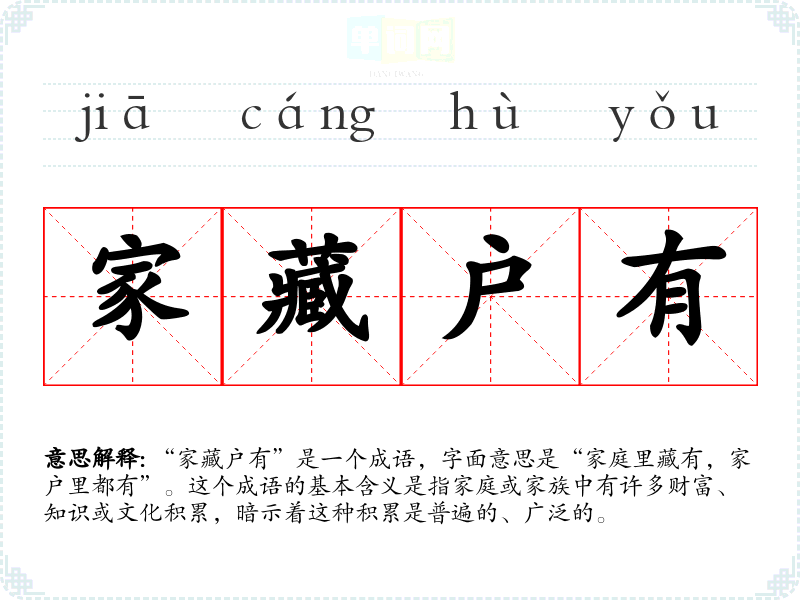 - 演讲:在讨论文化传承或者家庭教育时,可以提及“家藏户有”的重要性。