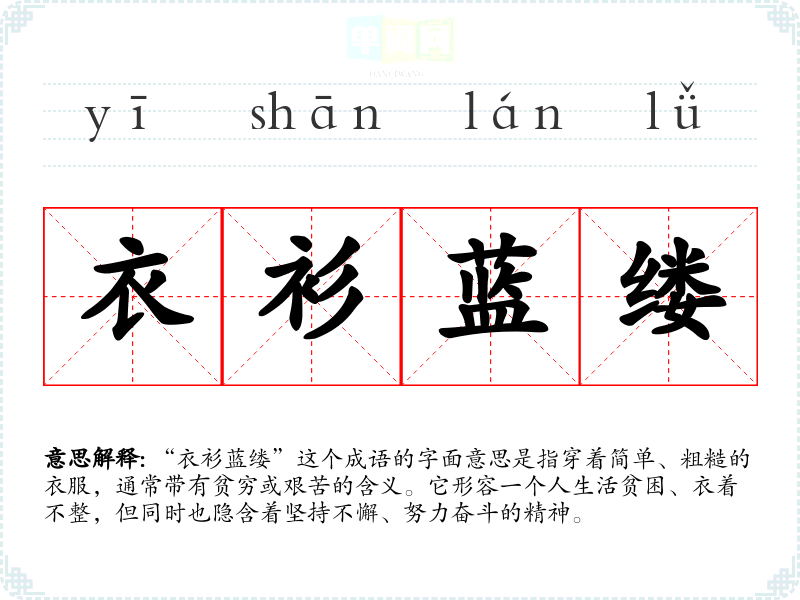 荜路蓝缕 蓝缕:破衣服。坐着柴车,穿着破衣服,去开辟山林。形容创业的艰苦。