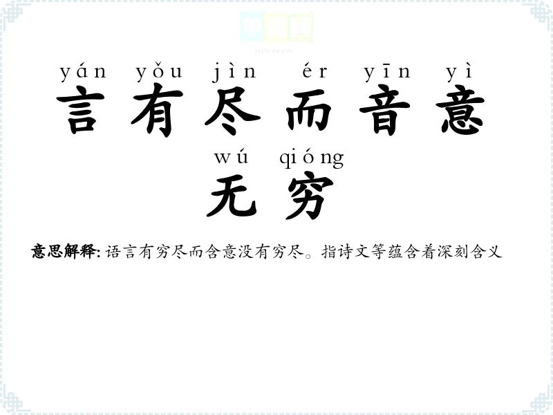 | 言不尽意 | 情意曲折深远,言语难以全部表达。常用于书信末尾,表示说的话没能把意思都表达出来。 |