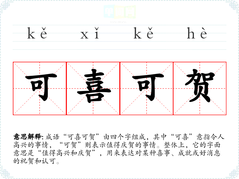 | 可喜可贺 | 值得欢喜与庆贺的 |