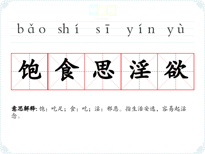 | 饱暖生淫欲 | 指生活安逸,易起淫念。 |