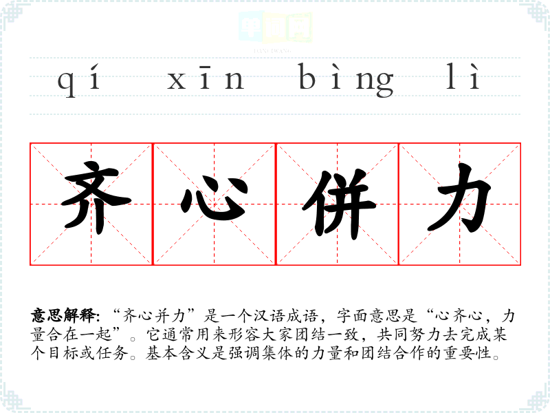 - 团结一心:强调团结和一致的精神。