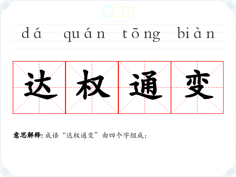 字面意思是指能够通达权衡事物的变化,灵活应对各种情况,具备适应性和应变能力。基本含义强调在处理事务时,能够审时度势,适应环境的能力。