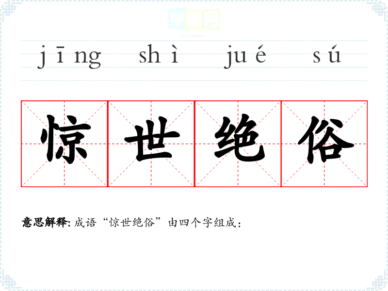 “惊世绝俗”出自于古代文学作品,虽然具体的出处不详,但可以理解为一种对非凡人才或独特事物的赞美。在古代文人笔下,常用以形容那些才华横溢、品行卓越的人物。其背后反映了古代社会对优秀人才的推崇。